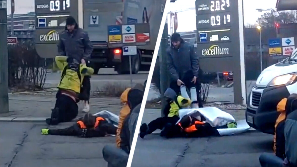 Duitser heeft genoeg van demonstranten en trekt ze eigenhandig de weg af Verkeer