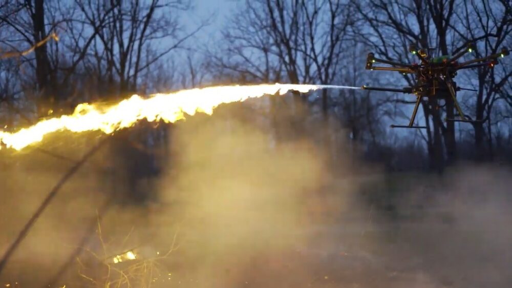 Binnenkort bij jou in de straat: de drone met ingebouwde vlammenwerper!