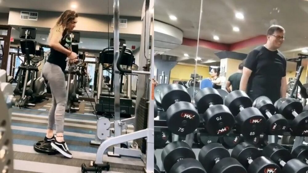 Een heleboel vreemde figuren die iets té hard gaan in de sportschool Fun