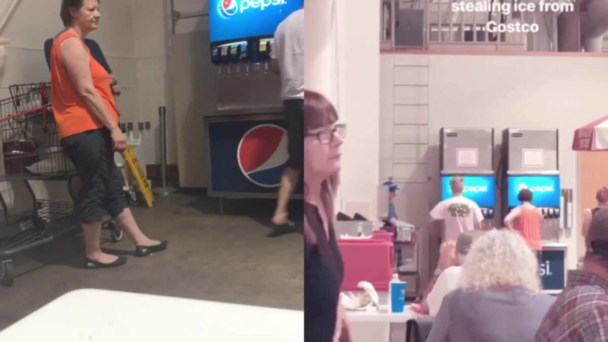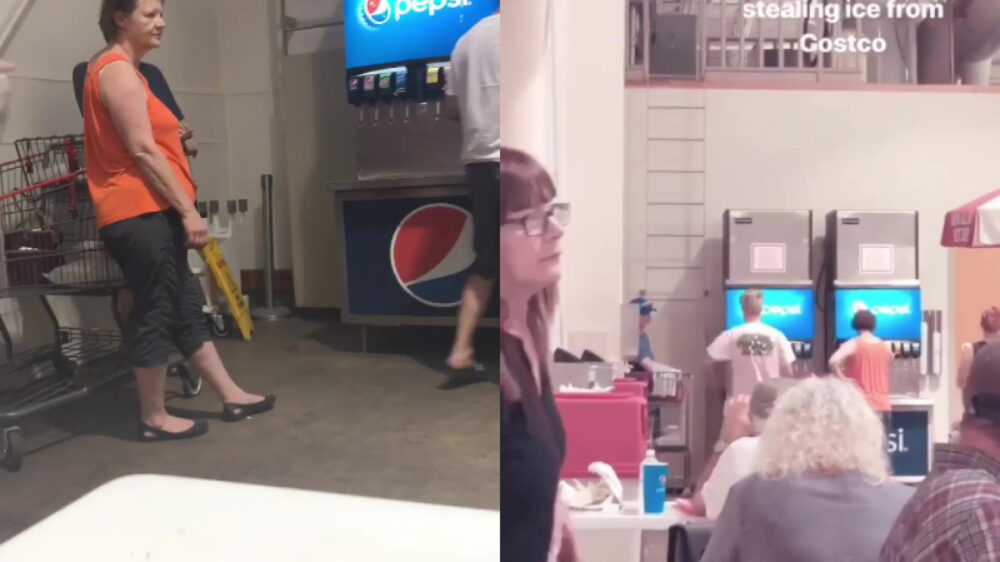 Deze dame zal wel een feestje hebben vanavond, want blijkbaar heeft ze nogal een gebrek aan ijs. Zo ernstig zelfs dat ze wacht tot de medewerkers de automaat opnieuw hebben gevuld, om daarna vrolijk verder te gaan met haar ijs-jatterij.