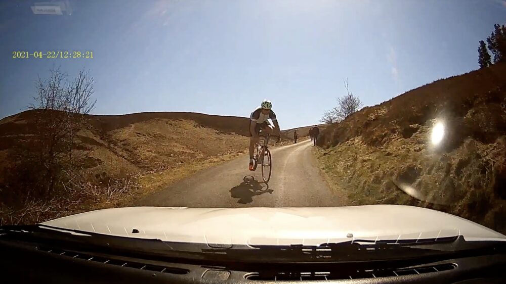 Voor een wielrenner is niets mooier dan na een zware klim de afdaling te pakken op hoge snelheid. Even de beentjes wat rust geven en op adem komen. Maar, als je op een eenrichtingsweg zit in de Goyt Valley in Engeland (bekend als een van de gevaarlijkste wegen daar), moet je natuurlijk wél even opletten op verkeer dat je tegemoet kan komen. Dat ging in dit geval niet goed waardoor de wielrenner op een Mazda MX5 klapte en zijn voorruit sloopte.