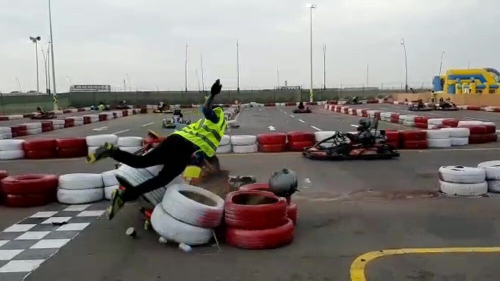 Kartbaanmedewerker maakt dankzij stuurfout een onvrijwillige salto