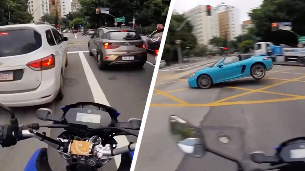 Porsche gaat een stukje vliegen als hij over het kruispunt jankt