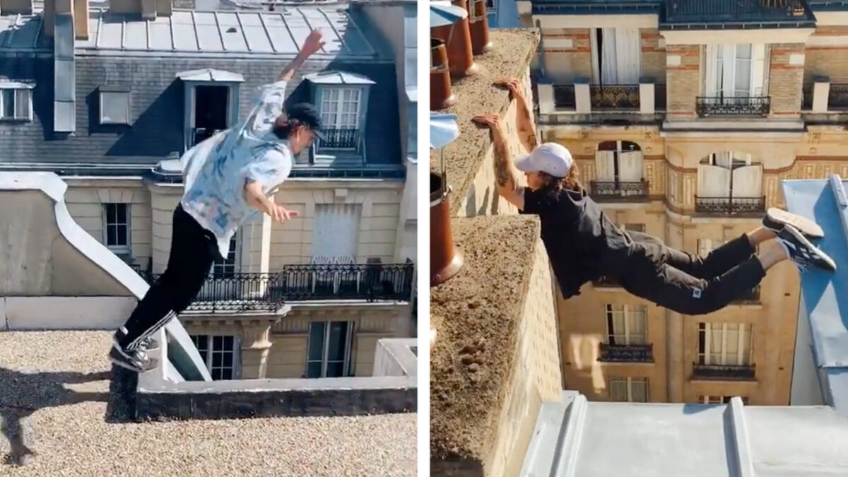 Waarom je überhaupt je leven riskeert door bovenop allerlei daken rond te springen vragen we ons sowieso af, maar voor adrenalinejunk Ben Cante is dat blijkbaar niet genoeg, want hij gooit er nog even een Charlie Chaplin-challenge bovenop.