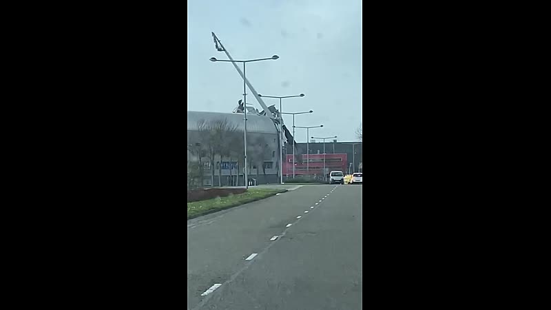 Het dak van het stadion van ADO Den Haag waait los door de storm. pic.twitter.com/CdEBjV4G5X