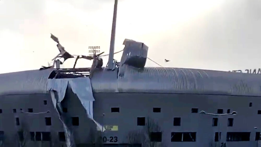 Dak van ADO Den Haag-stadion losgewaaid door storm Eunice