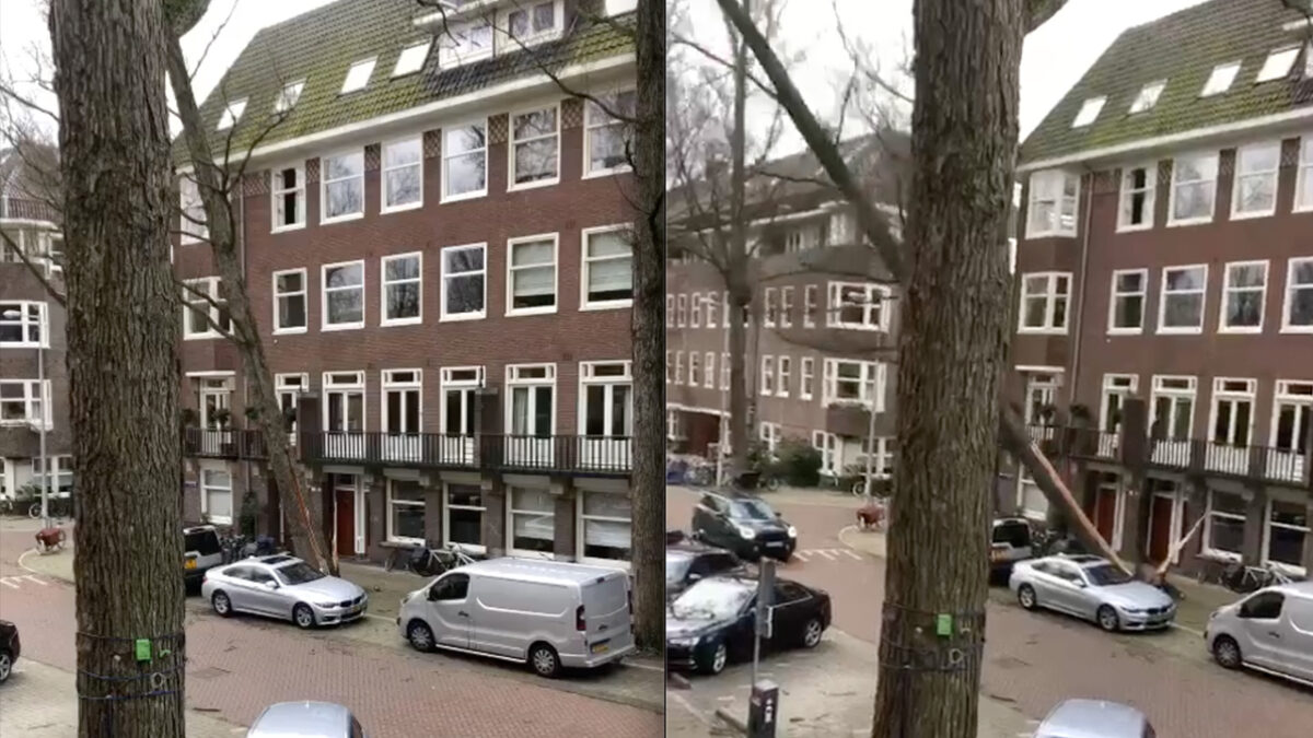 Wow: omvallende boom in Amsterdam sloopt voorbijrijdende Mini