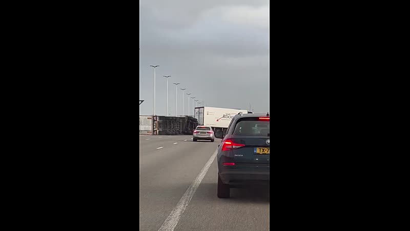 Vrachtwagen verliest het van Eunice en wordt op de Moerdijkbrug omvergeblazen