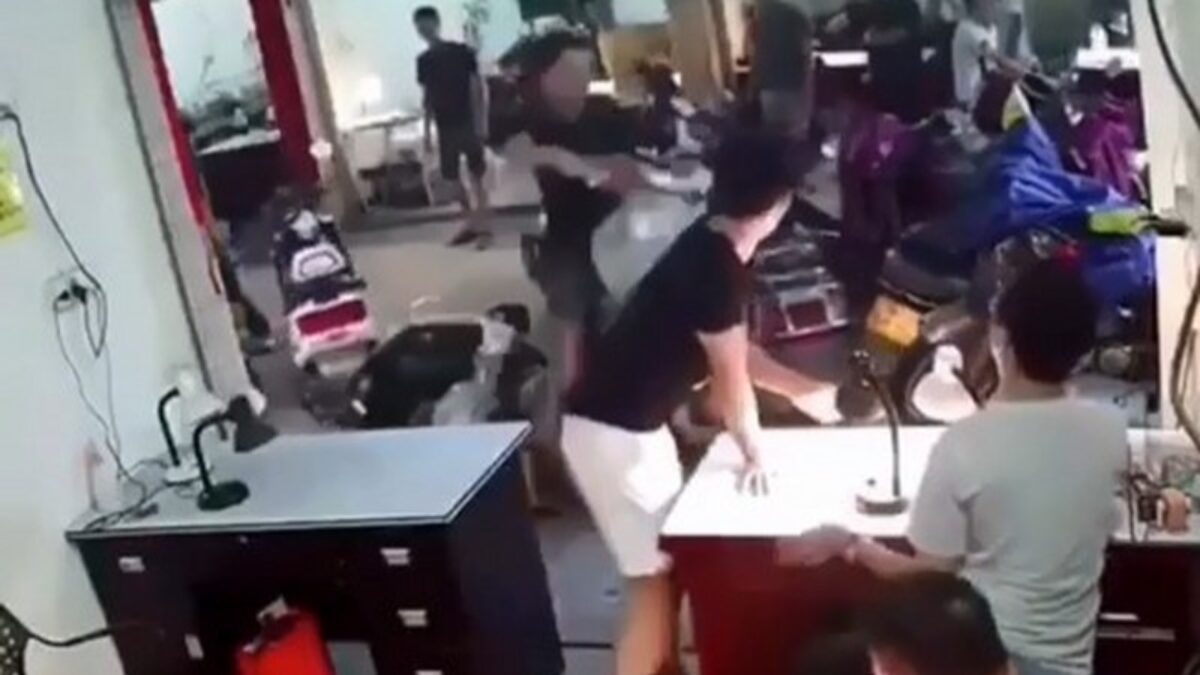 Chinees heeft ietwat moeite om zijn scooter in bedwang te houden