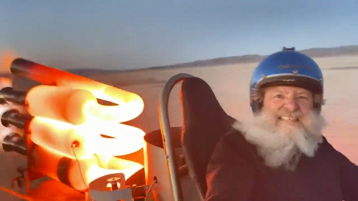 Crazy Rocketman Bob Maddox heeft een straalmotor achter zijn skelter gegooid