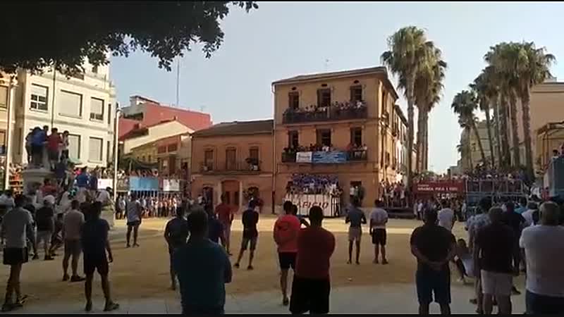 Bofkont krijgt een stevige ontspanningsmassage tijdens het stierenrennen Fun