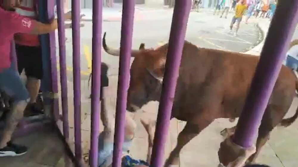 Bofkont krijgt een stevige ontspanningsmassage tijdens het stierenrennen