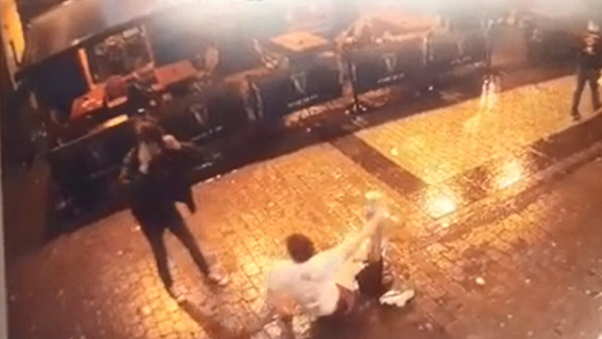 Ladderzatte feestganger heeft een omslachtige manier om zijn broek uit te trekken
