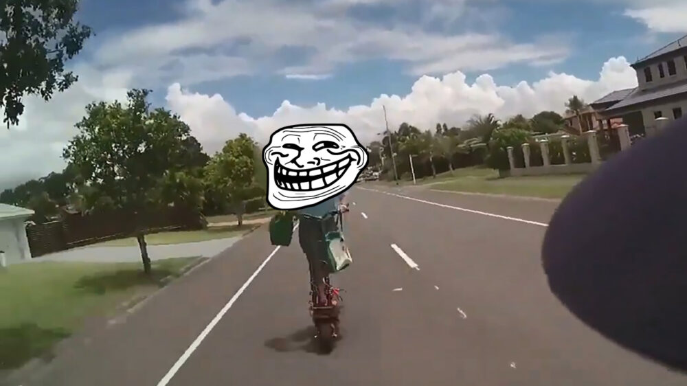 Mop, mop gas erop dacht de 40-jarige Triston Davidson toen een agent hem tot stoppen maande. Deze scheurneus uit Brisbane heeft een nachtje mogen brommen nadat hij een agent omver kegelde met zijn e-step. Hij werd later aangehouden nadat de politie camerabeelden van het nabijgelegen winkelcentrum hadden gebruikt om hem te identificeren en op te sporen.