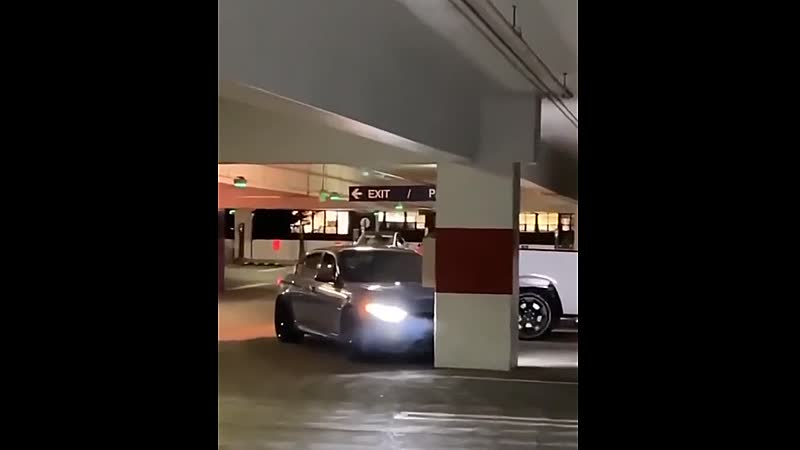Knuppel in een BMW M3 rijdt iets te sportief de parkeergarage in Fails