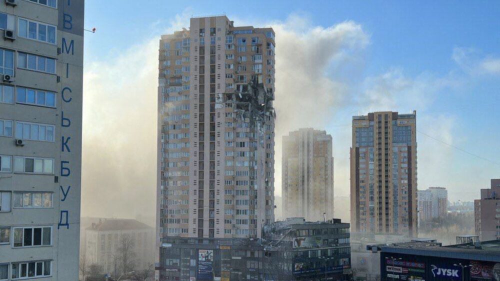 Video: woontoren in Kiev zwaar beschadigd na geraakt te zijn door raket