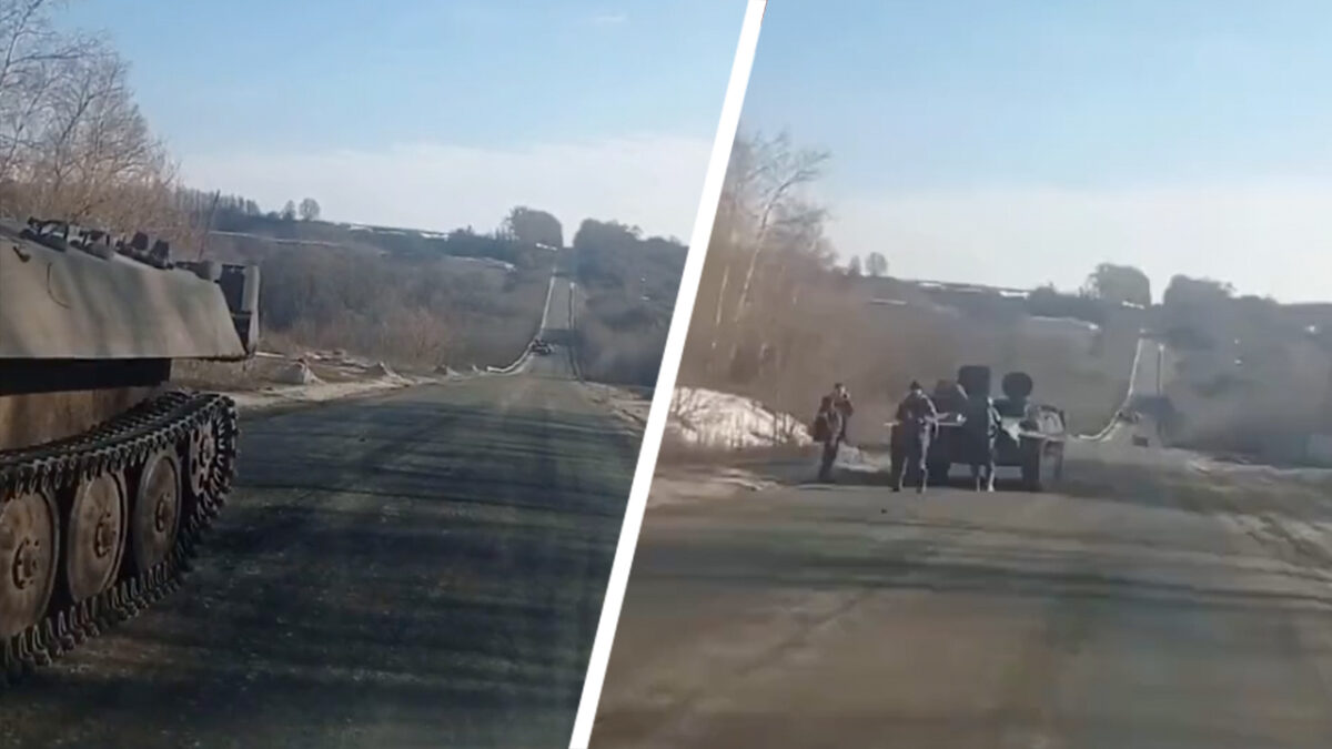 Ons Russisch is wat roestig, maar als we de Twitters moeten geloven treft een Oekraïner een aantal Russische soldaten aan met hun tank. Ze zijn gestrand, hebben geen eten, benzine (of diesel) meer.