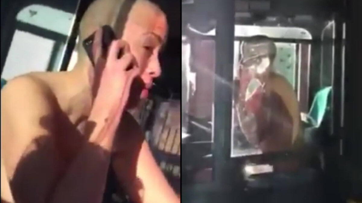 Naakte dame heeft last van de hitte en sluit zich in bestuurderscabine van Engelse dubbeldekker op Bizar