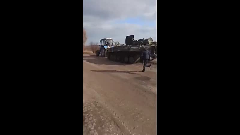 Waarschijnlijk is dit de eerste tank in de geschiedenis die door een boer met zijn trekker is gestolen. Het zou best hilarisch zijn als de aanleiding niet zo triest was...