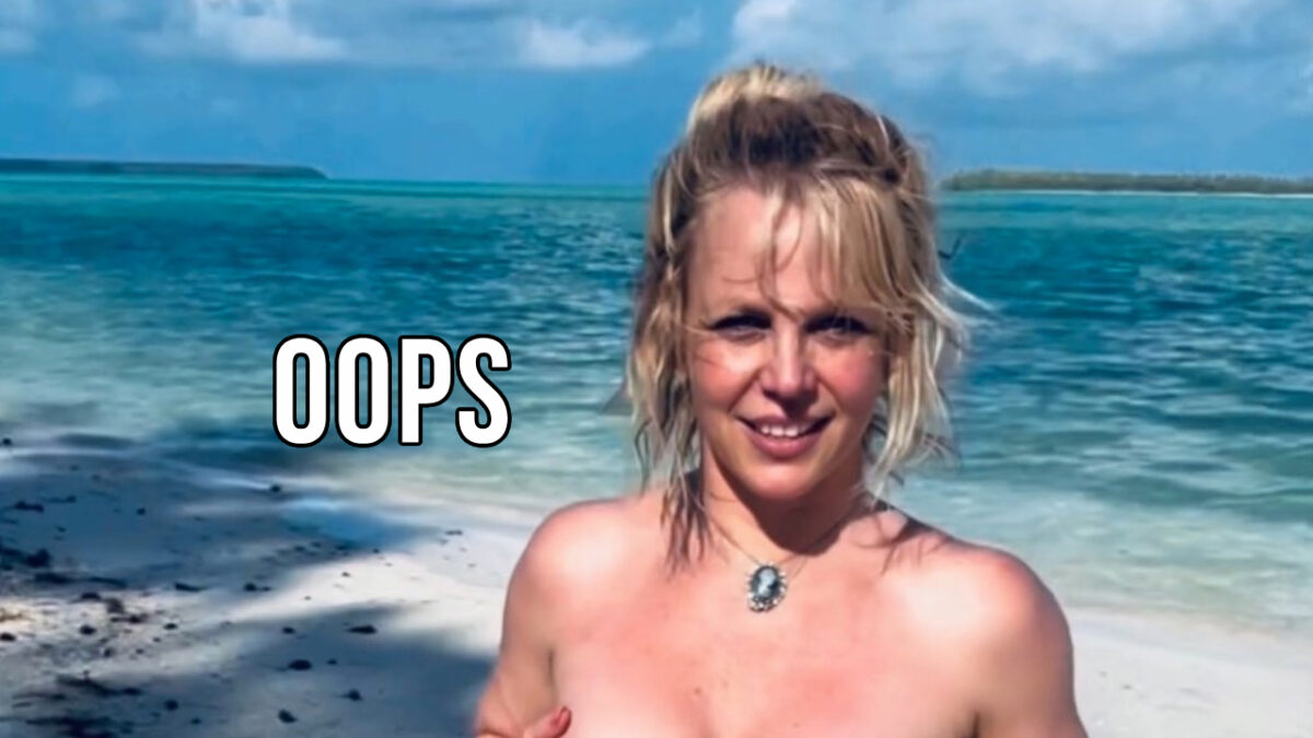 Britney krioelt tijdens haar vakantie over het strand en is zo te zien al haar kleding vergeten