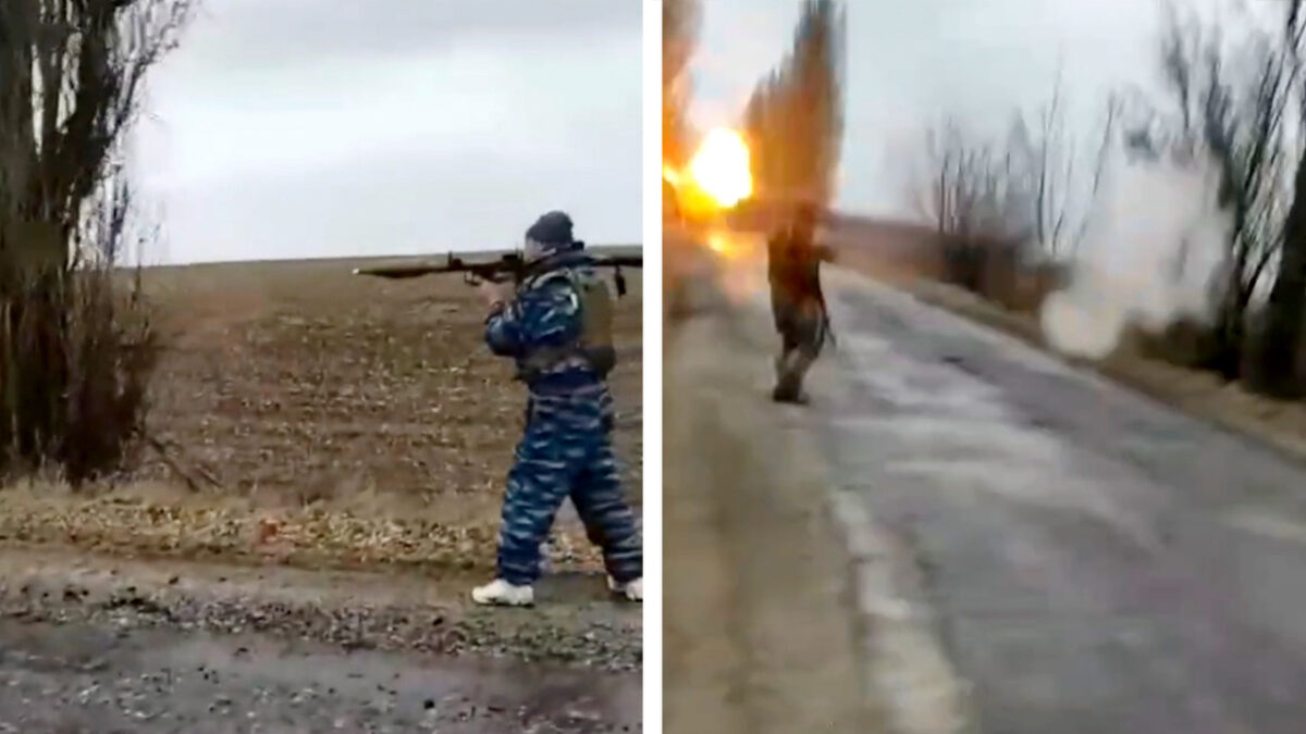 Oekraïense burgers vallen Russische pantservoertuigen met raketwerpers aan