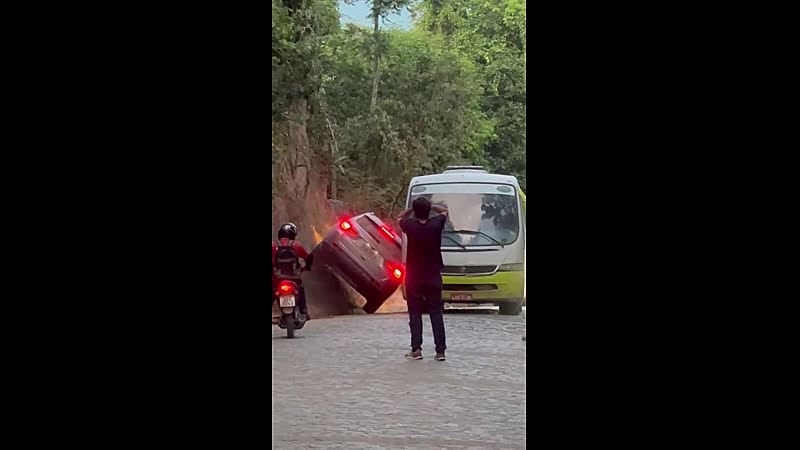 Iets te ongeduldige verkeershufter dacht bus via de wand te kunnen passeren