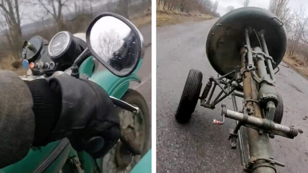 Dat Oekraïeners naast dapper ook behoorlijk creatief zijn, blijkt maar weer uit deze video waarin ze een mortier van de vijand weten te jatten door hem doodleuk achter hun zijspan te hangen. Mooi voor thuis. Mop moppppp 🏍💨💨💨