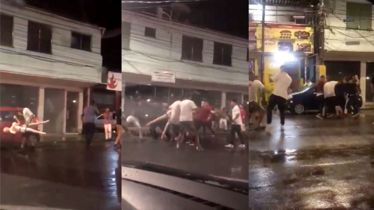 Stoere vriendin wijkt geen moment van zijn zijde tijdens heftig gevecht op straat