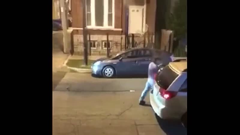 Prima reactie, lijkt ons. Nadat iemand dwars door je autoruit heen mept pak je rustig je karmabongo uit de kofferbak en plant je deze in de nek van het slachtoffer.