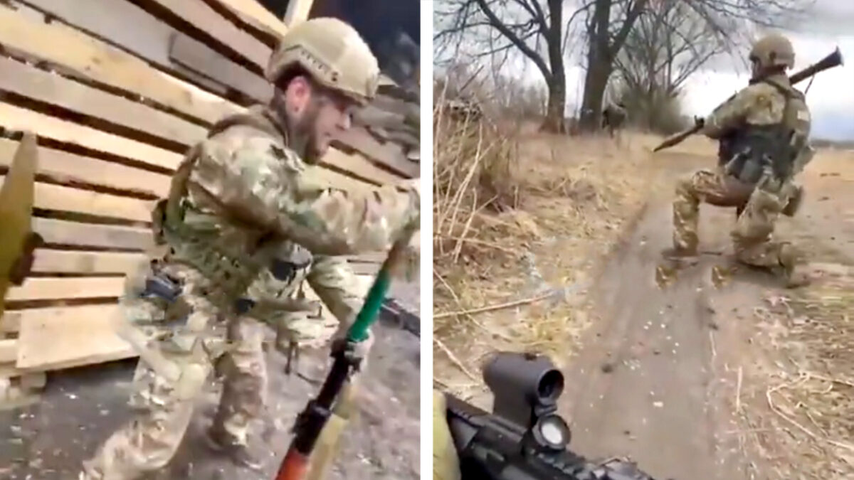 Beelden van Oekraïense strijdkrachten die twee Russische tanks in hinderlaag lokken