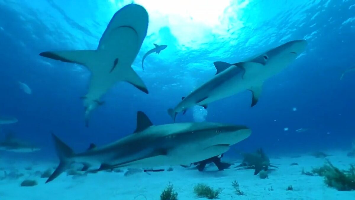 Mark Rober test op de Bahama's of haaien echt enkele druppels bloed in het water van een kilometer afstand kunnen ruiken.