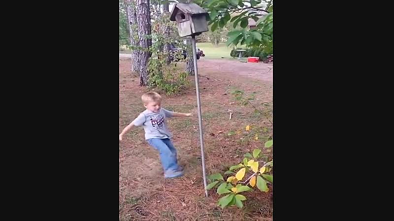 Dus jij vindt het nodig om stoer tegen een vogelhuisje te trappen en eraan te trekken? Bedenk je dan wel dat moedertje karma nooit ver weg is...