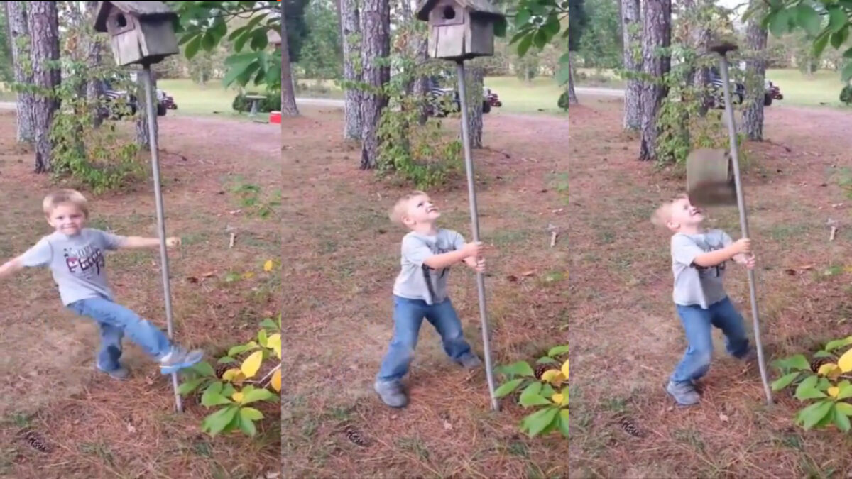 Dus jij vindt het nodig om stoer tegen een vogelhuisje te trappen en eraan te trekken? Bedenk je dan wel dat moedertje karma nooit ver weg is...