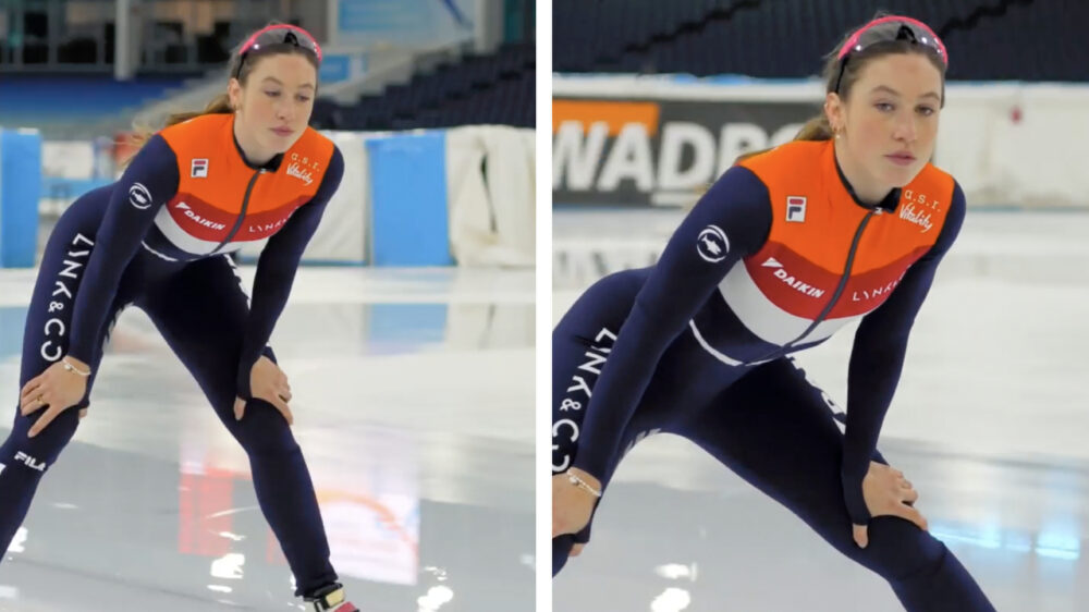 Tijdens de Olympische Winterspelen in Peking haalde de 24-jarige Schulting maar liefst 4 plakken voor Nederland binnen; twee keer goud, één keer zilver en één keer brons. Aan zelfvertrouwen dus geen gebrek en dat zie je ook als ze over de ijsbaan knalt. Niet alleen Jutta Leerdam weet preciés waar de camera staat ook Suzanne Schulting weet maar al te goed dat er een aantal ogen op haar gericht staan. Joehoeee!