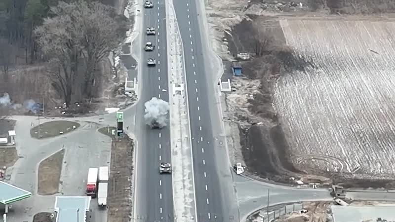 Net als eergisteren zijn er opnieuw zijn er dronebeelden naar buiten gekomen van een Russisch konvooi dat uit het niets van dichtbij onder vuur wordt genomen ten noordoosten van Kiev Kyiv. Dan heb je op zich wel ballen van staal als je ze op zo'n korte afstand onder vuur durft te nemen.