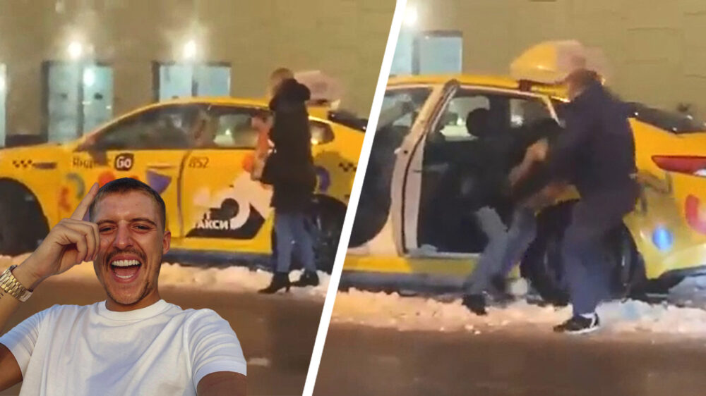 Taxichauffeur verandert in Lil' Kleine als een vervelend blondje tegen zijn auto trapt