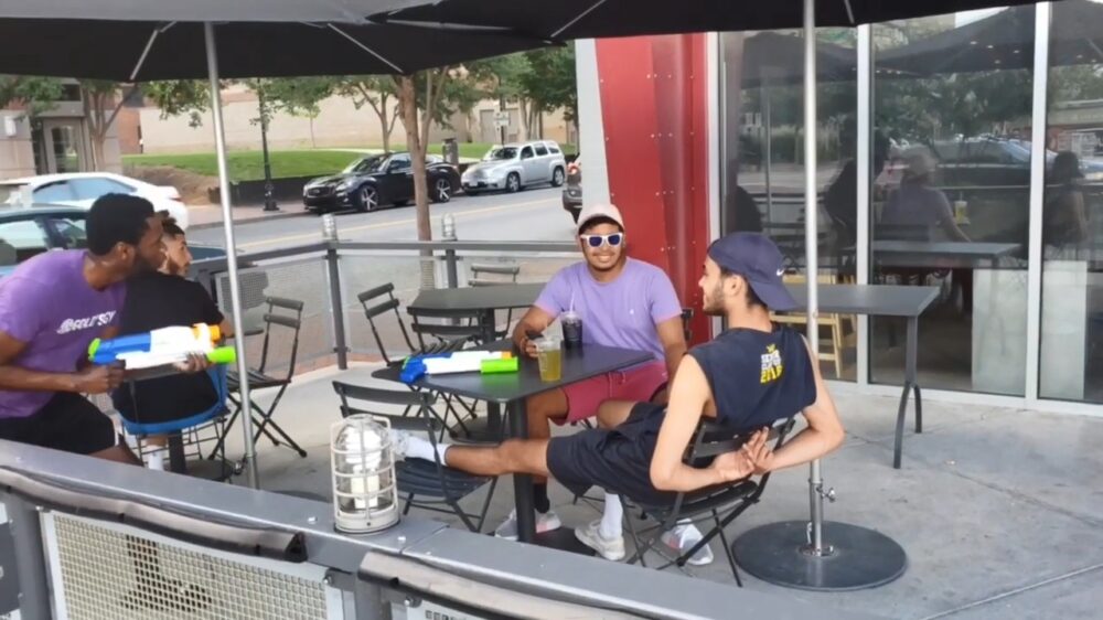 Watergevecht met willekeurige omstanders voor een lekker vrolijk momentje