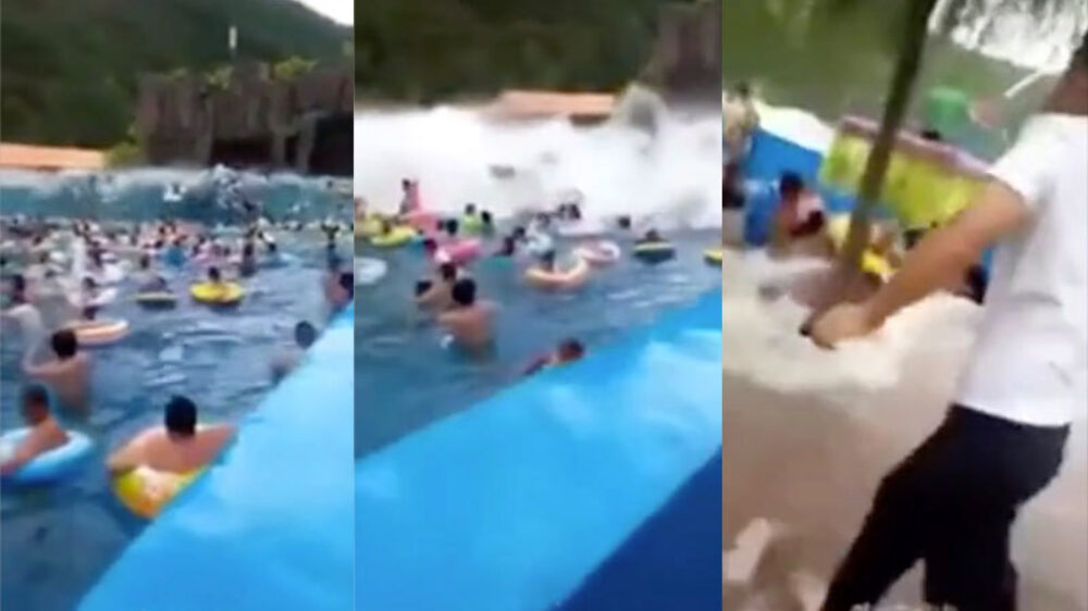 Deze tsunami in een Chinees golfslagbad is wellicht iets té realistisch