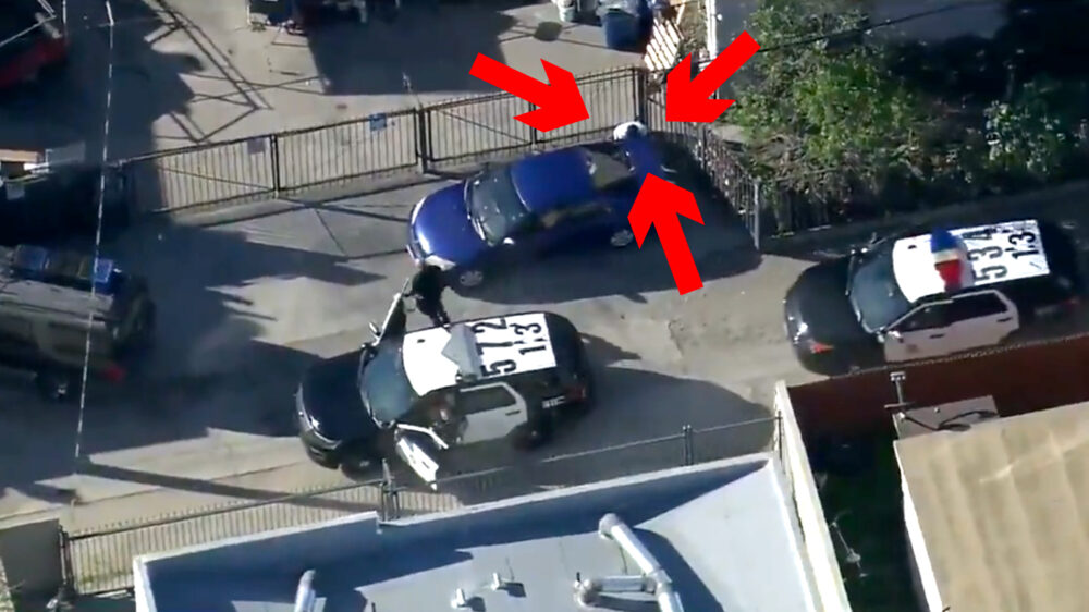 Nou, nu dus wel. Deze dienders in LA hadden blijkbaar nogal wat moeite om een gevluchte man te vinden die zich gehurkt achter een auto had verstopt. Was er maar een manier waarop iemand uit de helikopter een seintje kon geven...