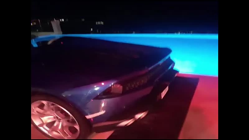 Playboymodel (en ex van Neymar) Soraja Vucelic rijdt dikke Lambo het zwembad in
