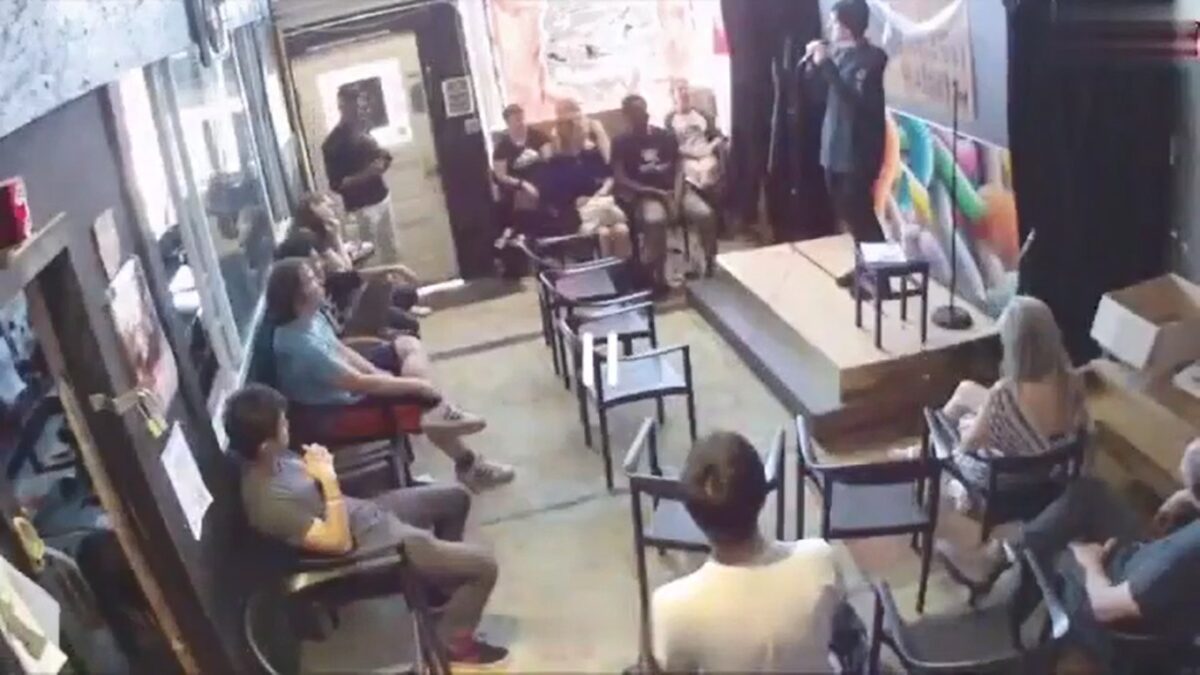 Stand-up comedian wordt op podium geslagen door humorloze toeschouwer
