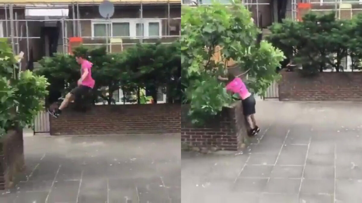 Parkourknakker kan het krijgen van kinderen na deze sprong wel vergeten Fails