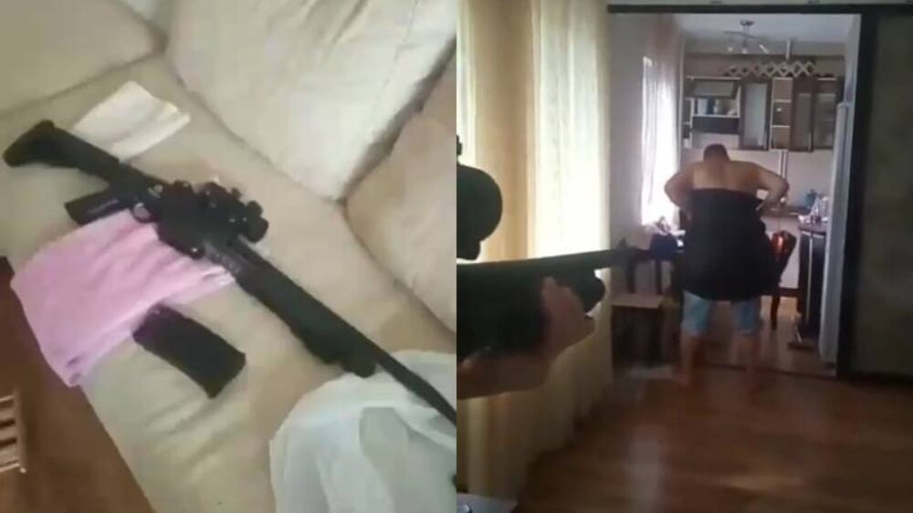 Idioot laat zich voor zijn reet schieten met een veel te groot geweer