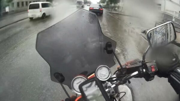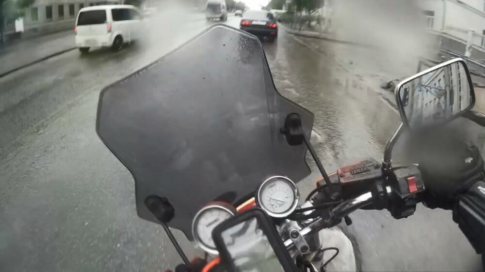 Motorrijder gevloerd na een smerige overtreding van het slechte wegdek