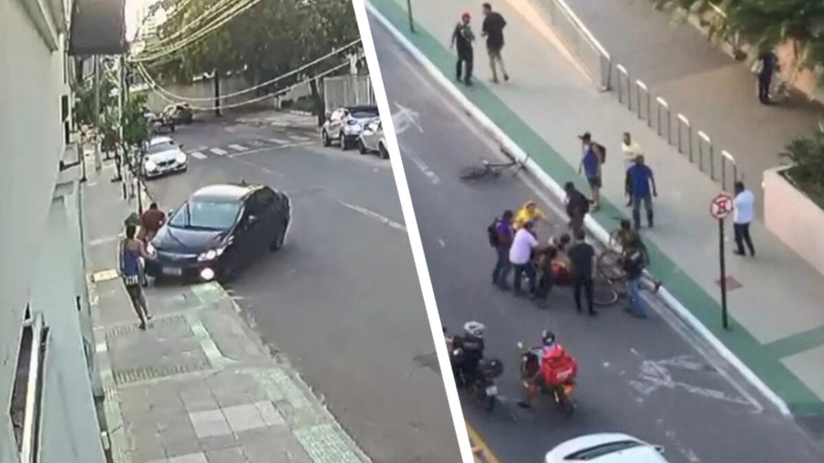 Dat Brazilië niet voor beginners is blijkt maar weer eens als we deze CCTV-beelden zien. Als een straatschoffie in de wijk Itapuã de telefoon van een vrouw jat wordt hij onmiddellijk aangereden door d'r vriend die haar kwam ophalen. Als zijn fiets klemzit probeert hij weg te rennen, maar wordt hij al snel door omstanders aangepakt en even later aangehouden door de politie.