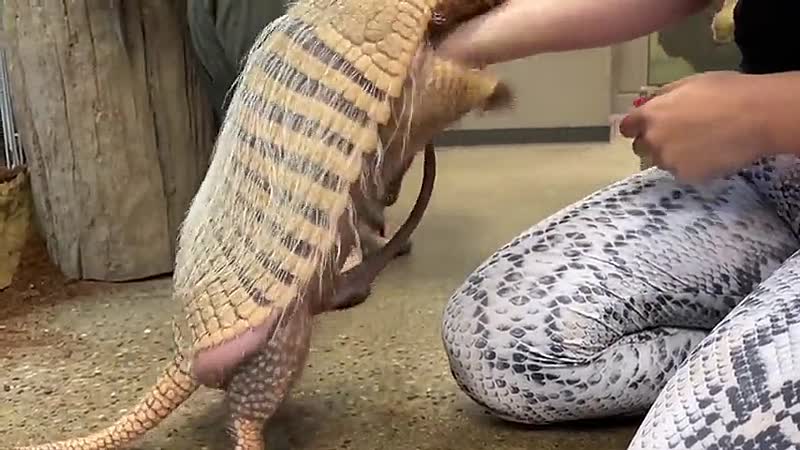 Deze dame had snel spijt dat ze een gordeldier wilde aaien