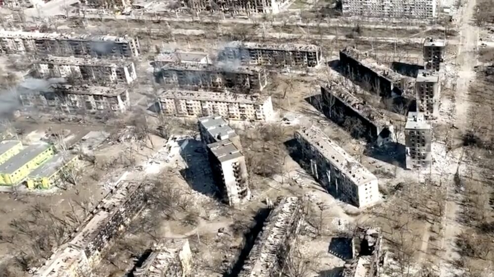 Vandaag zijn er beelden verschenen van het door oorlog verscheurde #Marioepol. Voertuigen liggen er als wrakken bij, woonhuizen zijn compleet platgebrand en er liggen dode mensen op straat.