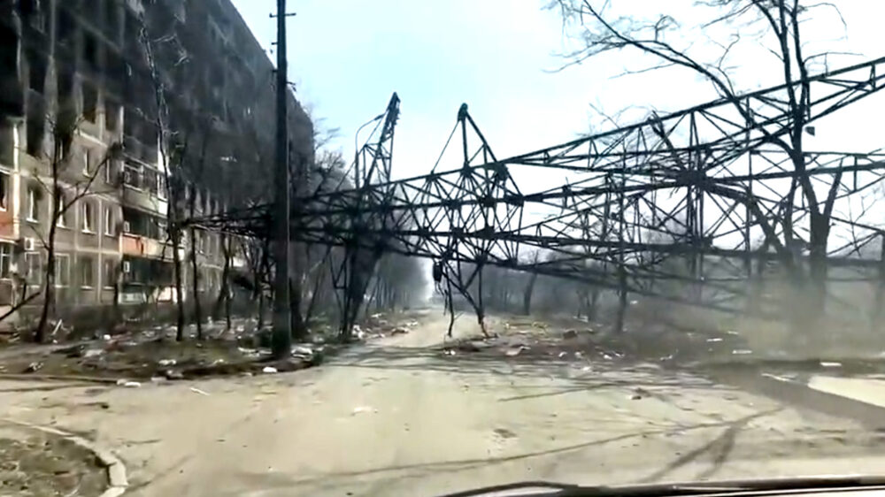 Apocalyptische beelden als je door een compleet verwoest Marioepol rondrijdt