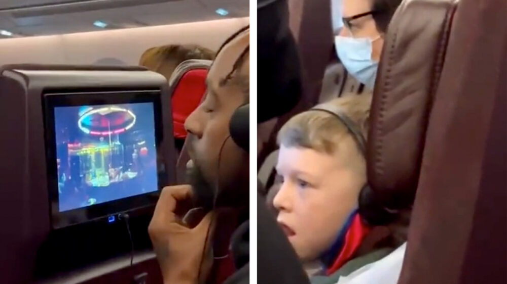 Ondertussen in het vliegtuig: stiekem naar de film van de buurman gluren