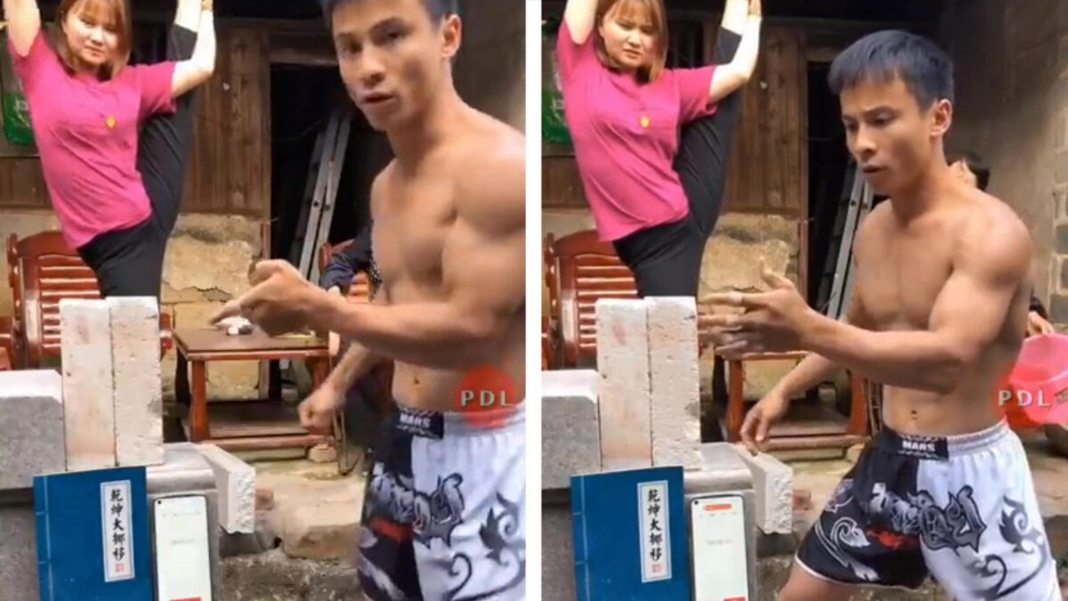 Mocht zijn vechtsportcarrière om wat voor reden dan ook in de soep lopen dan kan 'ie altijd nog als stratenmaker aan de slag. Kan iemand trouwens even uitleggen waarom zijn moeder daar in een verticale spagaat achterstaat?